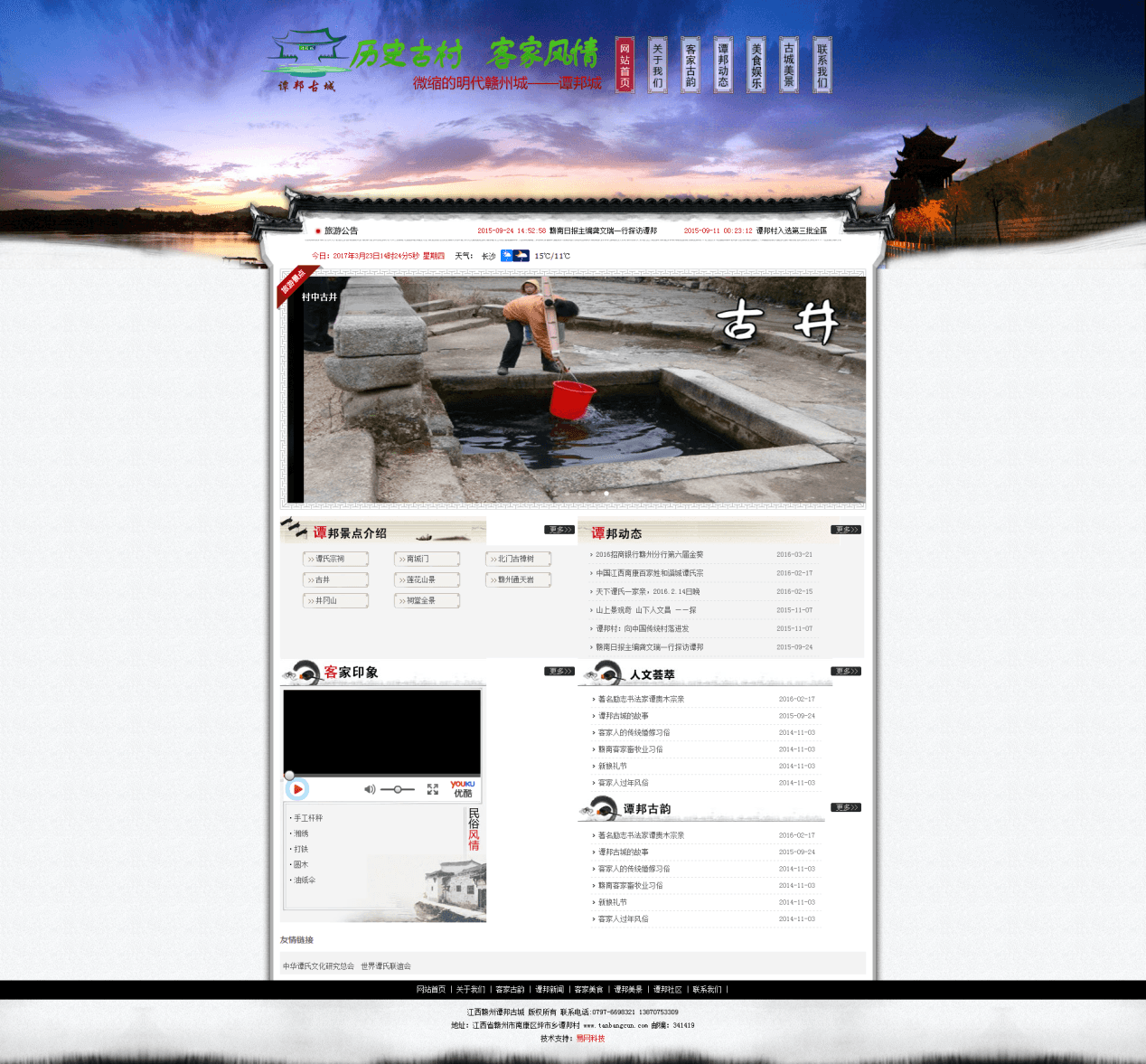 明代最后的村落,五百年谭邦城”,是谭邦村的真实写照。该村建成于明正德十三年(1518年),系由明武宗皇帝朱厚照敕建,南赣巡抚王阳明组织修建的一座城池。谭邦城依照赣州城的格局修建,分设东南西北四座城门和小南门,城墙用花岗岩石砌筑而成。城外除东面依山而建外,其余三面均建有大量池塘。在修建谭帮村的过程中,先后建设了包括民宅、官衙、祠堂、众厅、义仓、城池、牌坊、书屋等众多古建筑。这些建筑保存最为完好的当属两座祠堂和部分民宅。祠堂名“孔发堂”和“中和堂”,均修建于明末清初。两座祠堂宽敞豪华,高大雄伟。其中孔发堂长35.9米、宽16.4米、高6.75米。祠堂分上中下三个屋栋,两个天井,一个戏台。大厅中顺排列着数根高大的石柱和木柱。梁柱交汇处镶嵌着麒麟木雕,大门上方镶嵌雕刻着龙凤图样的门当,充分显现了当时祠堂主人的高贵身份;中和堂长34.6、宽16米、高6.65米,除格局和式样与孔发堂相近外,还增加了一个前院。尤为珍贵的是,前院围墙顶端上镶砌的砖雕,各式珍禽动物栩栩如生,在其他地方的祠堂难于见到。谭邦现存的古民居,属徽派风格,青砖青瓦,雕梁画栋,大多是清朝康熙、乾隆和道光时期的建筑。