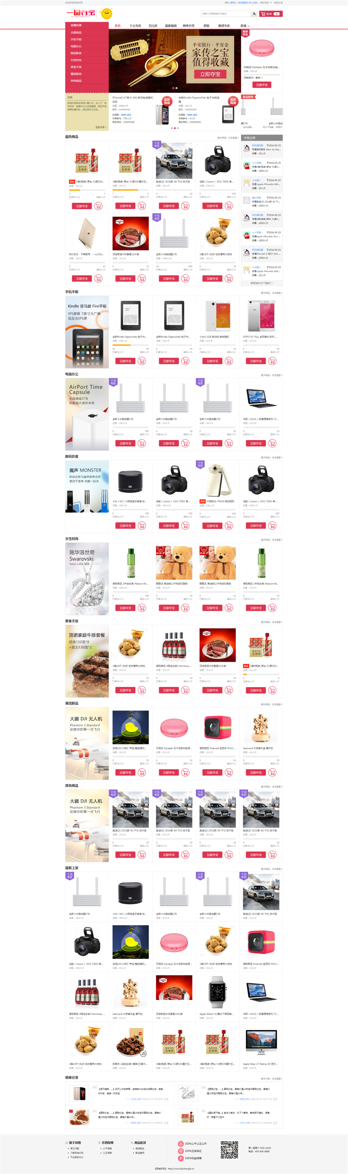 通过在线支付平台,支付1元即购买1人次,获得1个“夺宝码”。同一件商品可购买多次或一次购买多份,购买的“夺宝码”越多,获得商品的几率越大。