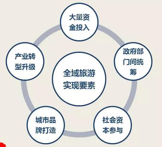 全域旅游从项目角度来看,落地需要具备五个方面的要素:大量的资金投入、政府间各个部门统筹协调、社会资本参与、城市品牌打造和产业转型升级。